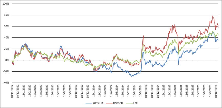 輝立香港新股指數ETF (2835.HK) 4月份錄得0.95%的月漲幅,表現優於恒生指數(HSI)4.33%的月跌幅及恒生科技指數(HSTECH)5.70%的月跌幅。截至2025年4月30日,這款ETF自上市以來上升了13.23%,跑輸恒生指數的上升22.94%及恒生科技指數的上升35.93%。
