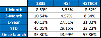 輝立香港新股指數ETF(2835.HK) 4月份表現